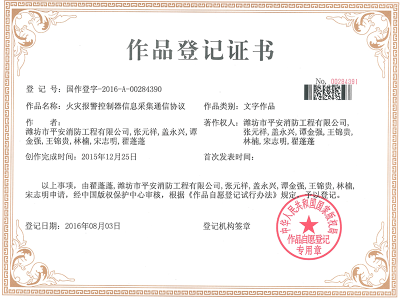 火災(zāi)報警控制器信息采集通信協(xié)議_平安作品登記