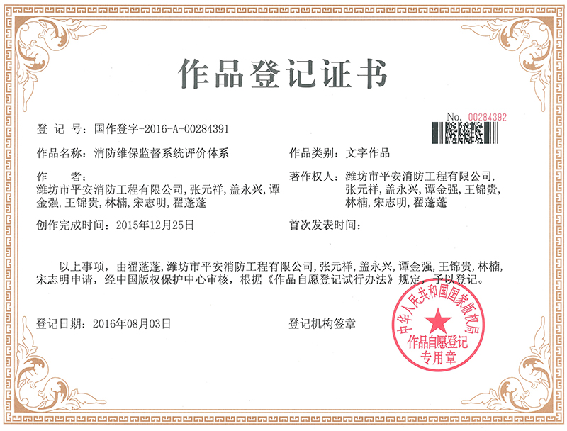 消防維保監(jiān)督系統(tǒng)評價體系_平安作品登記